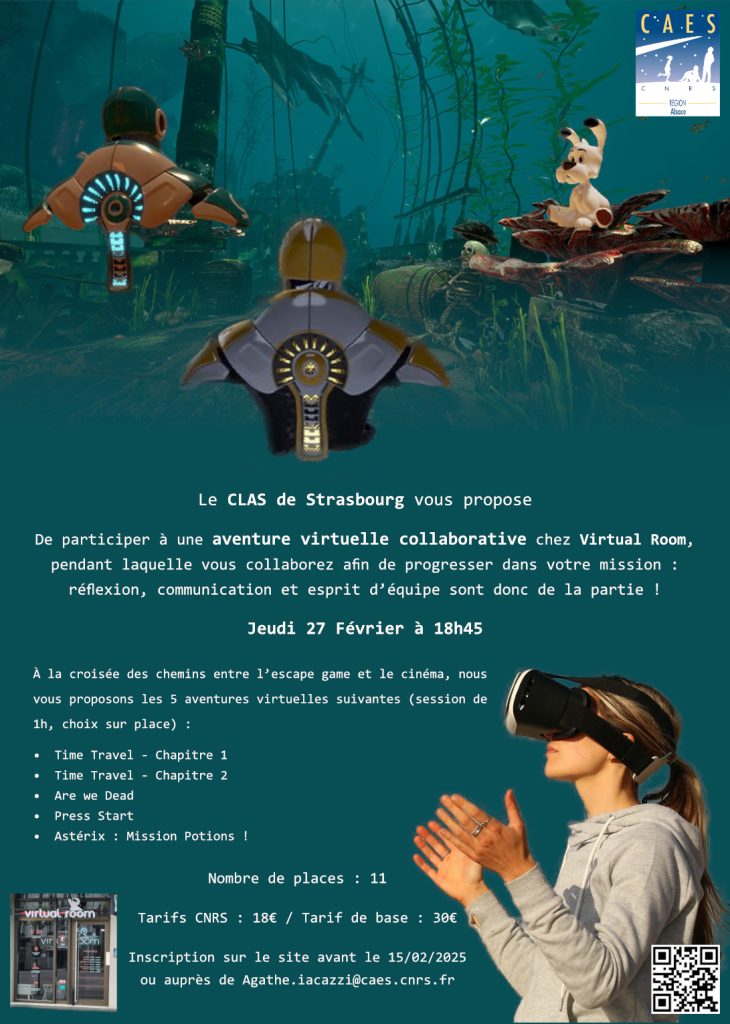 Le CLAS de Strasbourg vous propose de participer à une aventure virtuelle collaborative chez Virtual Room, pendant laquelle vous collaborez afin de progresser dans votre mission : réflexion, communication et esprit d’équipe sont donc de la partie !